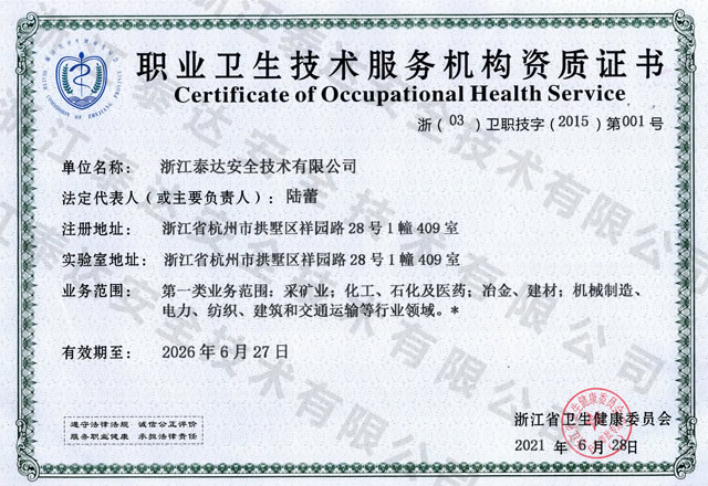 采礦業;化工、石化及醫藥;冶金、建材;機械制造、電力、紡織、建筑和交通運輸等行業領域的用人單位工作場所職業病危害因素定期檢測、用人單位職業病危害現狀評價、建設項目職業病危害預評價、建設項目職業病危害防護設施設計、建設項目職業病危害控制效果評價等技術服務。
